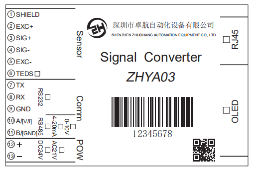 3、ZHYA02 稱重信號變送器面板及接線說明