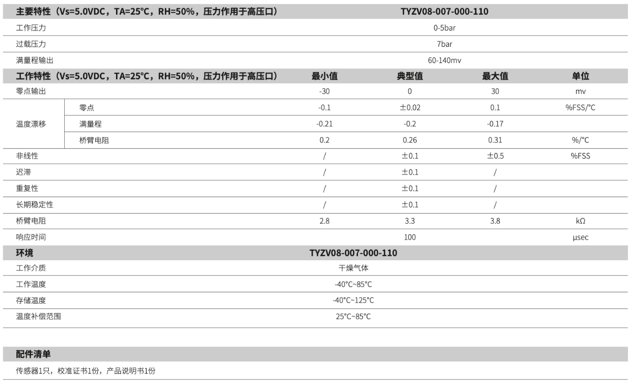 TYZV08-007-000-110型壓阻式壓力傳感器:
