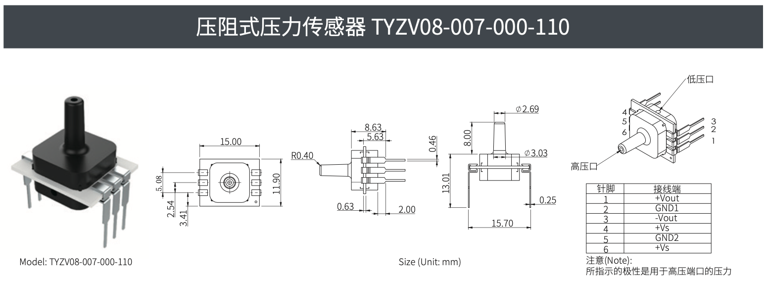 ▲TYZV08壓阻式壓力傳感器外觀及結構