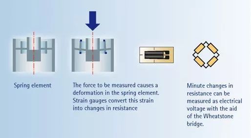 卓航精密偶然發(fā)現(xiàn)一張某環(huán)式拉壓力傳感器原理圖。這顯然是一種基于應變片的力傳感器,由圖可見彈性體產(chǎn)生變形,并在其表面產(chǎn)生應變。但一時卻不知道這種結(jié)構(gòu)的測量原理,于是就建立了一個簡單模型來進行分析。橋路會采用4個應變片,兩個被拉伸,另外兩個被壓縮。四個應變片被組成一個惠斯通電橋,通過一個激勵電壓來進行測量。當四個電阻不同時,也就是當應變片的由應變產(chǎn)生的電阻變化時,將產(chǎn)生一個輸出電壓。所以,從電橋原理上與應變天平?jīng)]有太大區(qū)別,問題是這應該如何布置應變計?