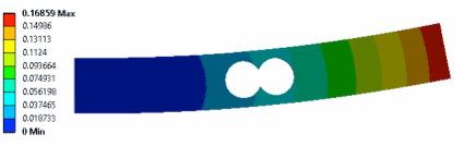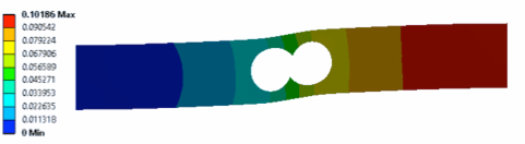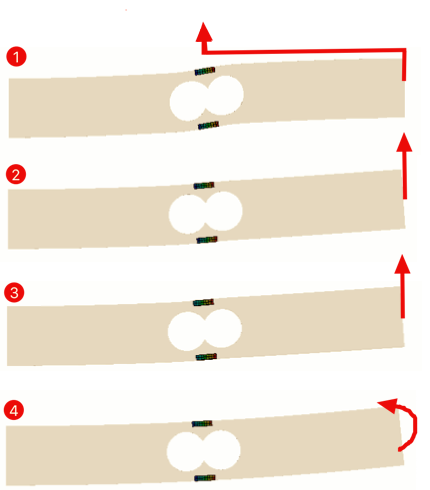 這種情況下,結(jié)構(gòu)變形見下圖。這一變形也可以佐證電橋輸出為0的結(jié)論。因此,這種結(jié)構(gòu)和電橋的情況下,稱重傳感器的安裝托盤是不能讓其中心在應(yīng)變計(jì)的正上方的。否則,無論如何變化質(zhì)量,傳感器基本沒有信號(hào)輸出。